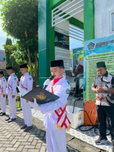 Suasana semakin menyentuh ketika Zahra Aulia Syafitri, siswi kelas 8-O, tampil menyanyikan lagu “Jasamu Guru”. Suara merdunya menggema memenuhi halaman madrasah dan membuat seluruh peserta larut dalam suasana haru sebagai bentuk penghormatan kepada para guru.