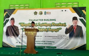 Jombang — MTsN 3 Jombang Bahrul Ulum Tambakberas kembali menggelar kegiatan Character Building bagi siswa-siswi Kelas Unggulan tahun pelajaran 2025/2026. Acara yang mengusung tema “Kenali Diri, Lejitkan Prestasi, Junjung Akhlak Terpuji” ini berlangsung di Gedung Serba Guna MTsN 3 Jombang dan diikuti oleh seluruh siswa Kelas Unggulan dengan penuh antusias. Senin, (3/11/25).