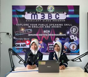 Jombang(MTsN 3 Jombang) — Suasana Gedung SBSN 2 lantai 1 MTsN 3 Jombang setiap pagi tampak lebih semarak dari biasanya. Suara lantang para siswa yang fasih berbahasa Inggris dan Arab terdengar bergantian dari ruang siaran. Mereka adalah para Broadcasting Ambassador (BCA) — sebutan bagi peserta program M3BC (MTsN 3 Jombang Broadcast Center).